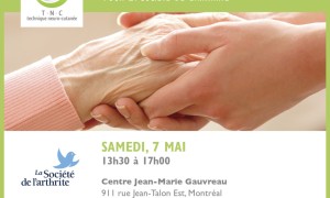 (Français) Venez vous voir le SAMEDI, 7 mai, de 13h30 à 17h00, pour recevoir un soin TNC (soin manuel pour soulager les douleurs) en échange d’un don pour la Société de l’arthrite.
